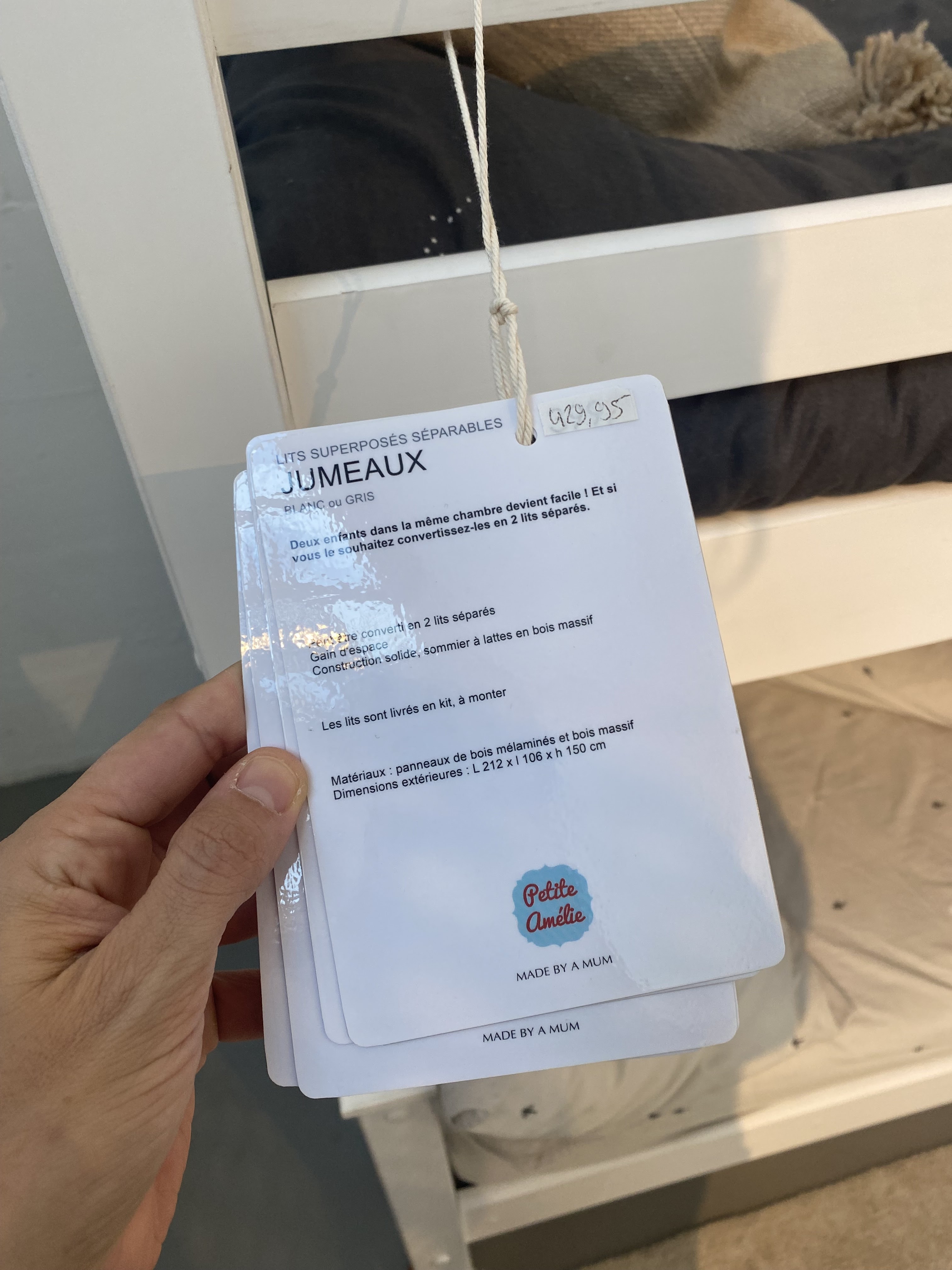 J'ai connue l enseigne sur internet. Apres m etre déplacé au showroom j ai été convaincu et j ai commandé les lits jumeaux en blanc. Expédition très rapide : achat effectué mercredi et livraison lundi. Une erreur dans les pièces expédiées, il me manquait 2 pieds de lits et 1 pièces était mal perforé( morceau de métal à l interieur). J ai écris au showroom, les pièces ont été commandées immédiatement. Cependant le service de livraison DPD France est déplorable ( jours et horaires non respectés). Cependant les gérantes de Petite Amelie ne m'ont pas lâchés et m'ont accompagné jusqu au montage finale des lits. Je confirme ce site est fiable à 100% et oui j ai rencontré des aleas mais je recommande vivement cette enseigne!